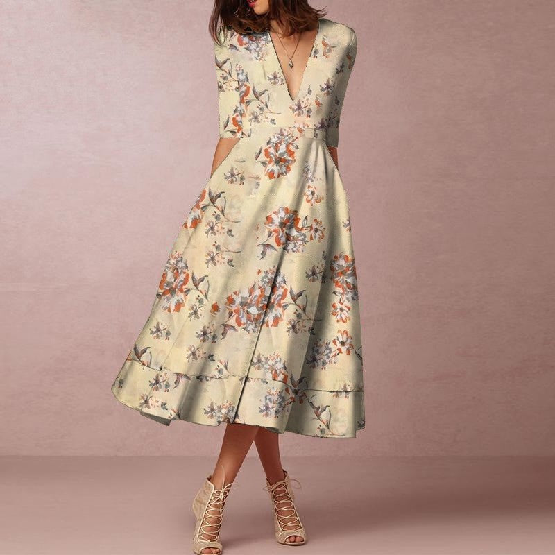 Women's Floral Print Short Sleeve V Neck Dress