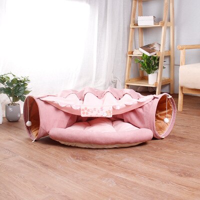 - This Cat Tunnel Bed is 2-in-1 as it serves both as a pet bed and a cat playing tunnel