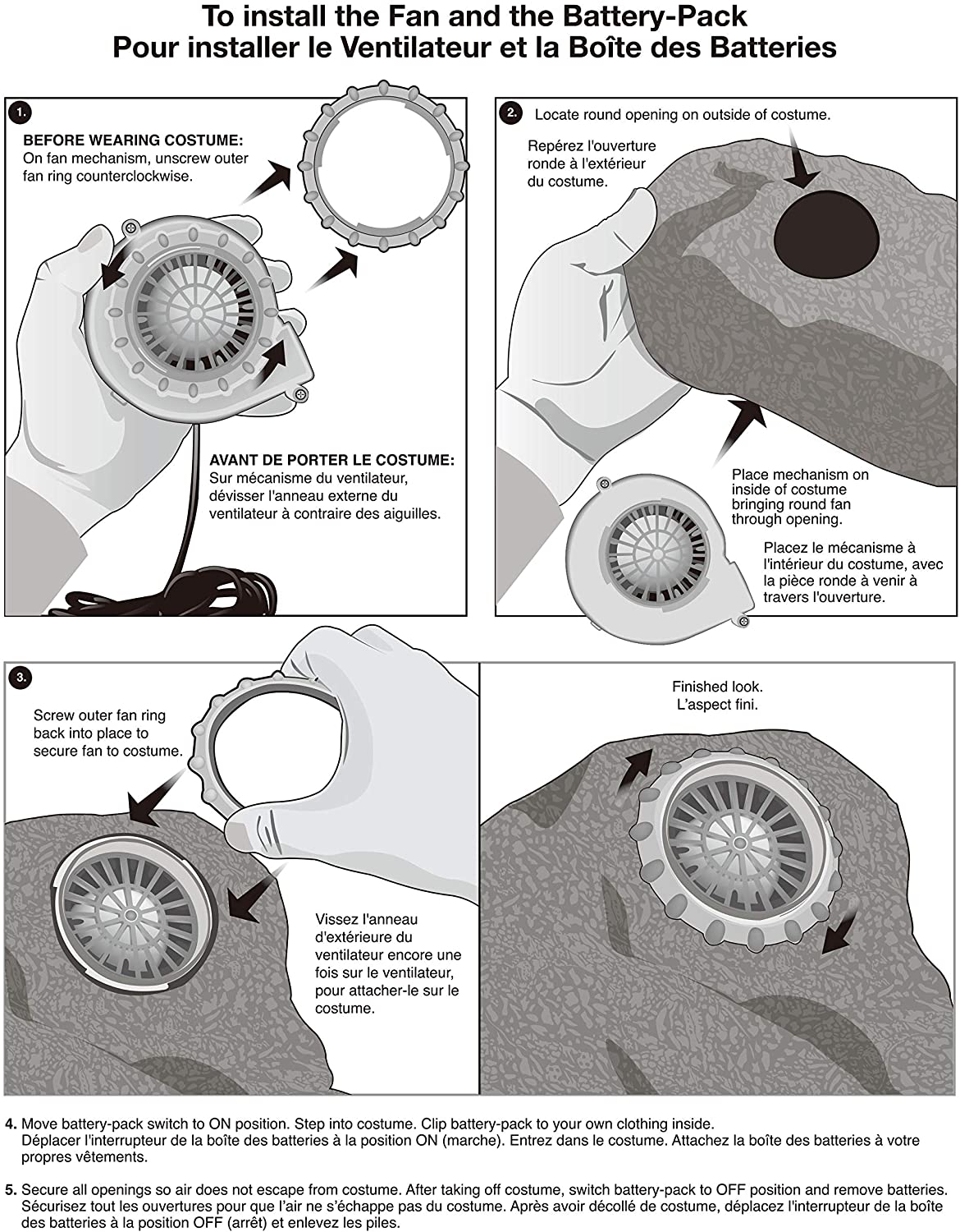- Specifications: zipper closure, long-sleeved inflatable jumpsuit, zipper on the back and battery-powered fan