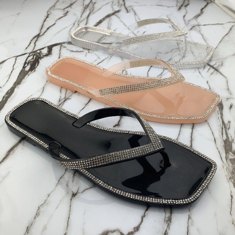 Women's Summer Slippers Rhinestone Shiny Flat Slippers