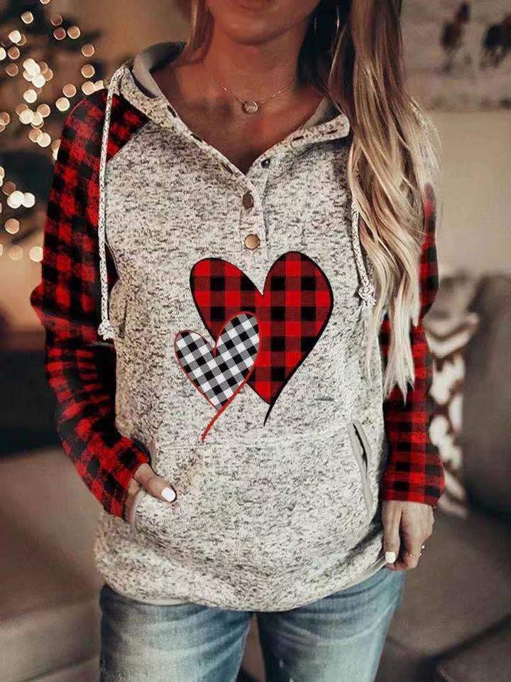 Women's Love Hearts Plaid Hooded Sweatshirt