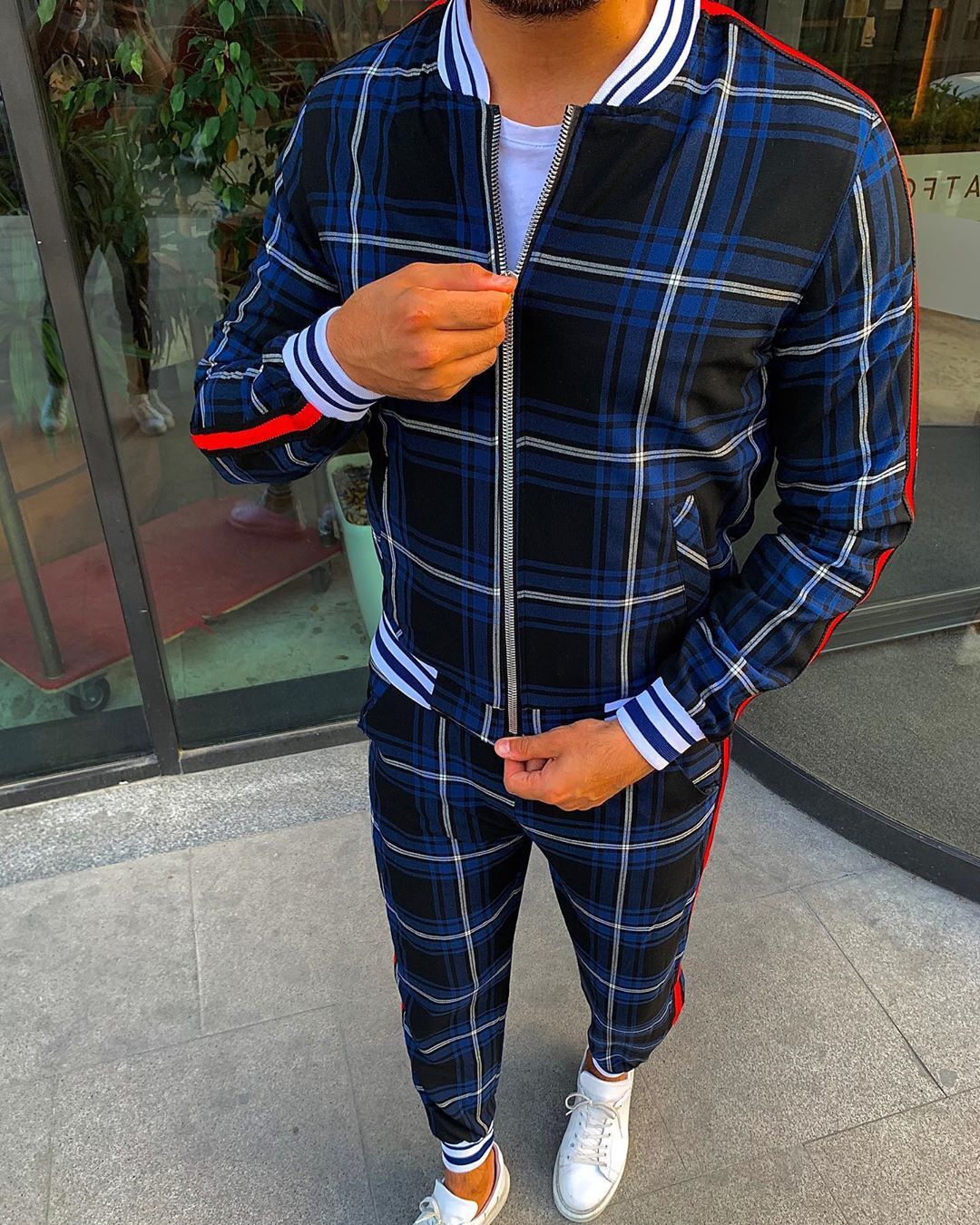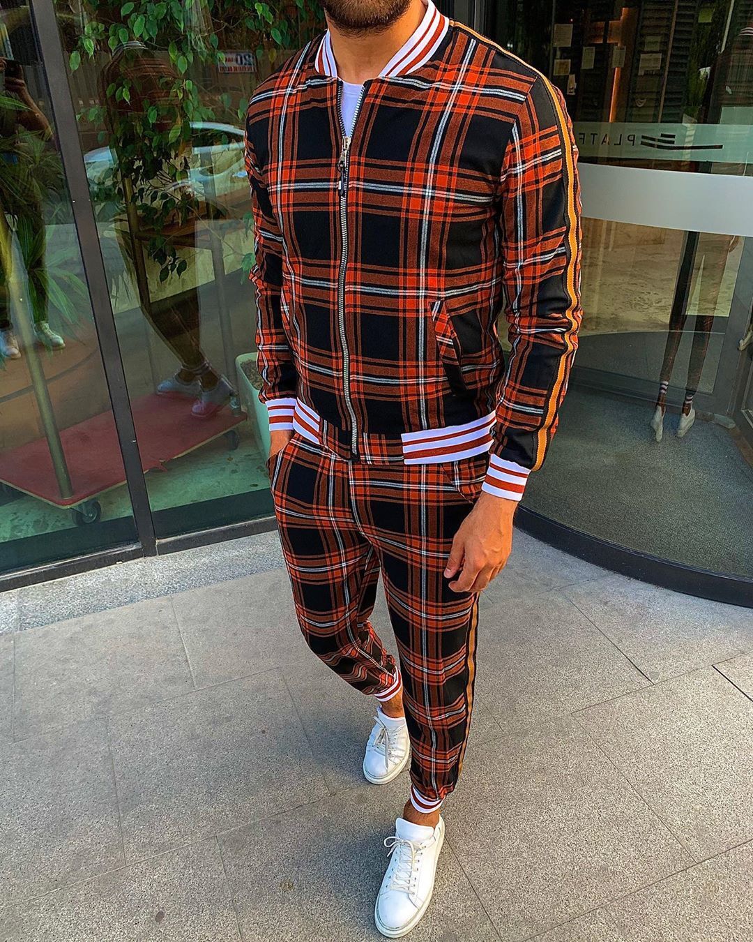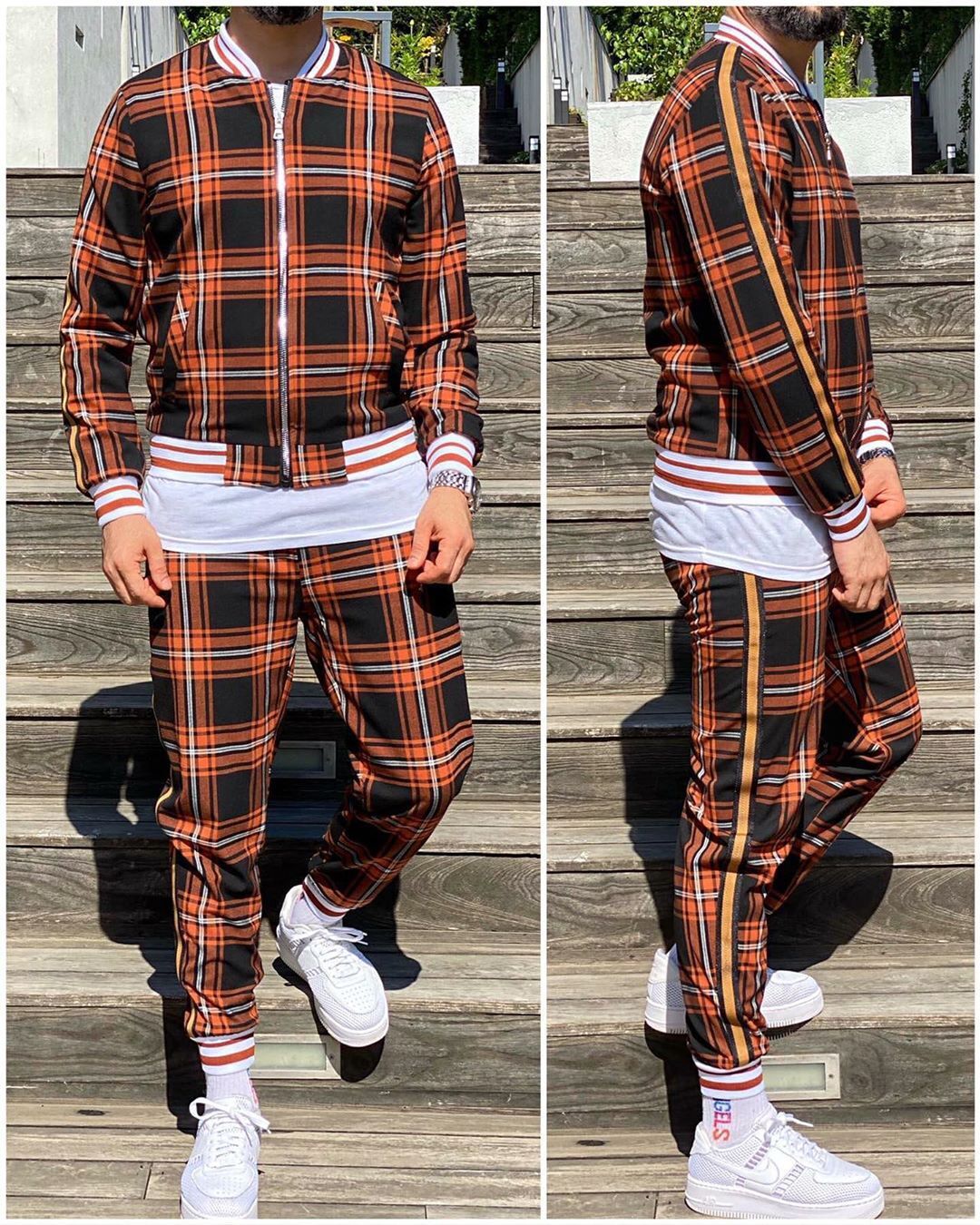 Men's 3D Plaid Casual Top Sweatshirt Pants Set