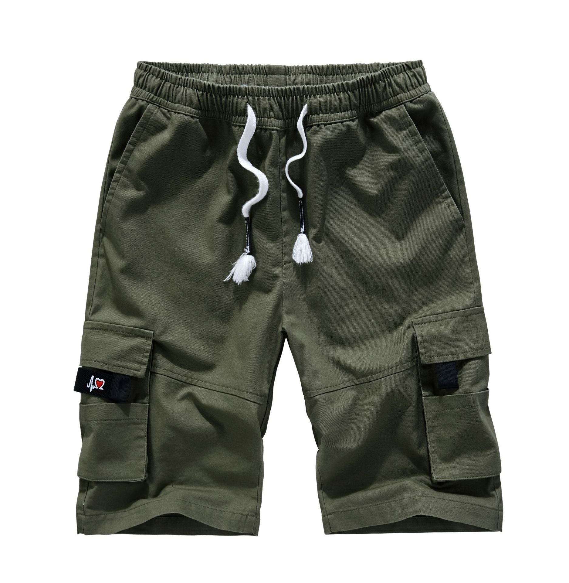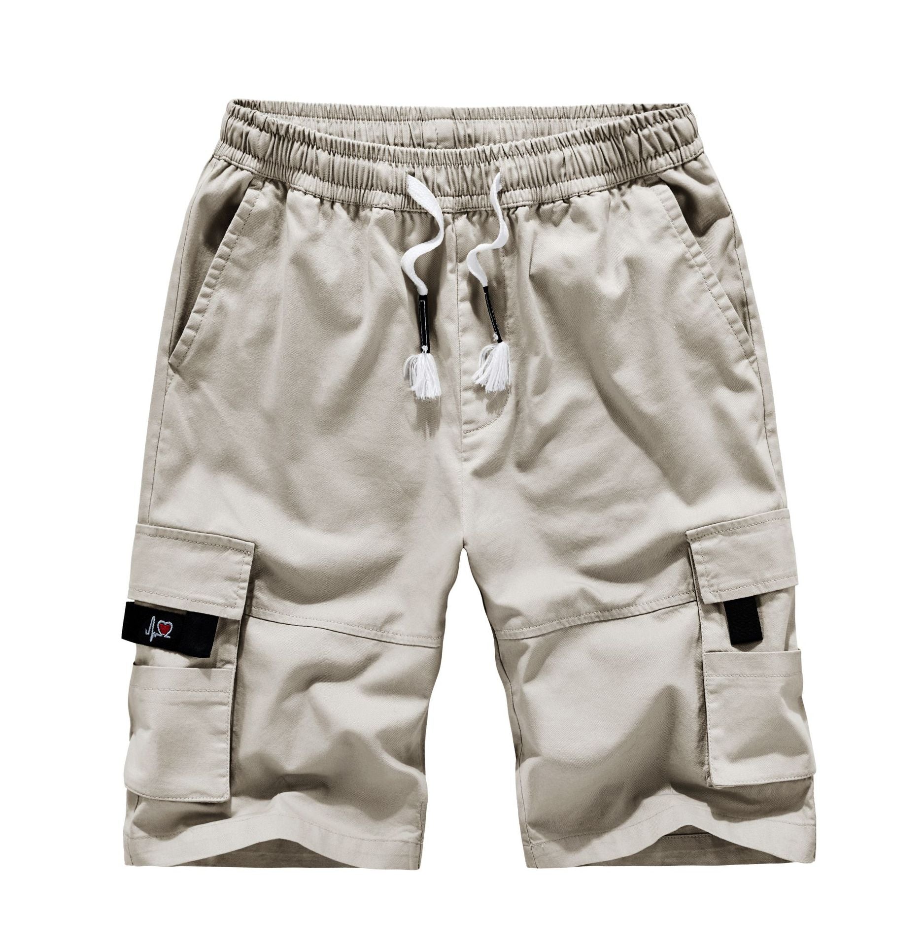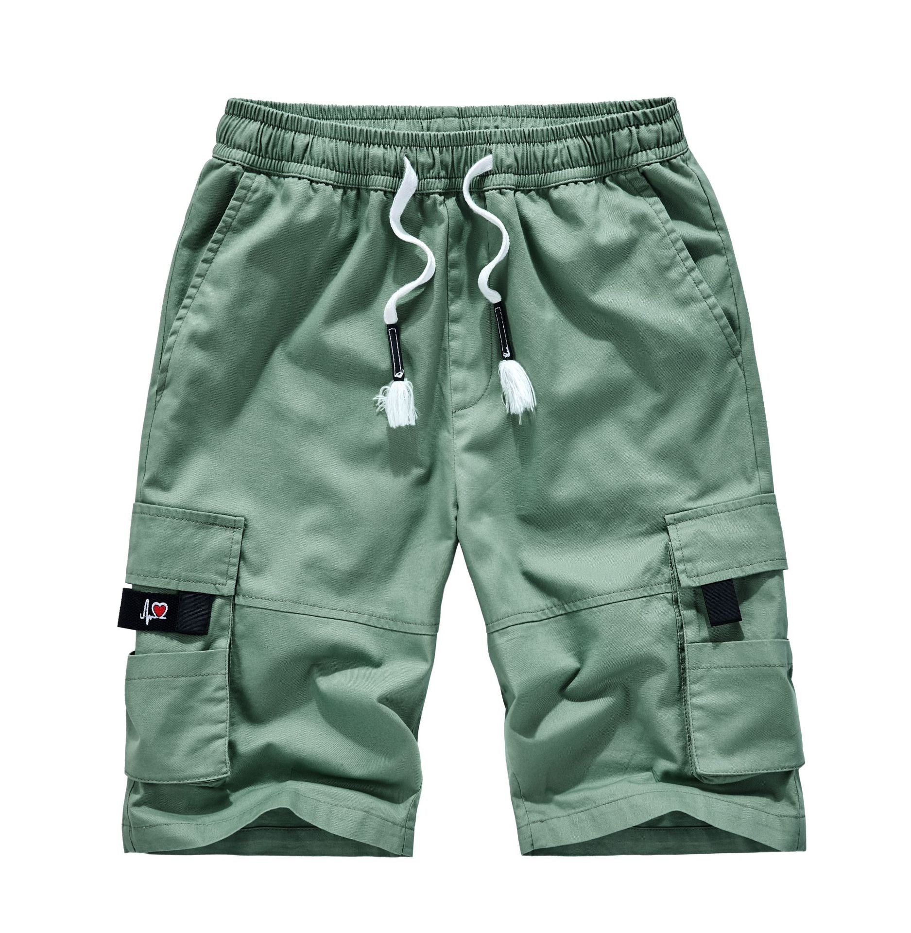 Solid Color Men's Casual Pants Cargo Shorts Mid Waist Straight Pants