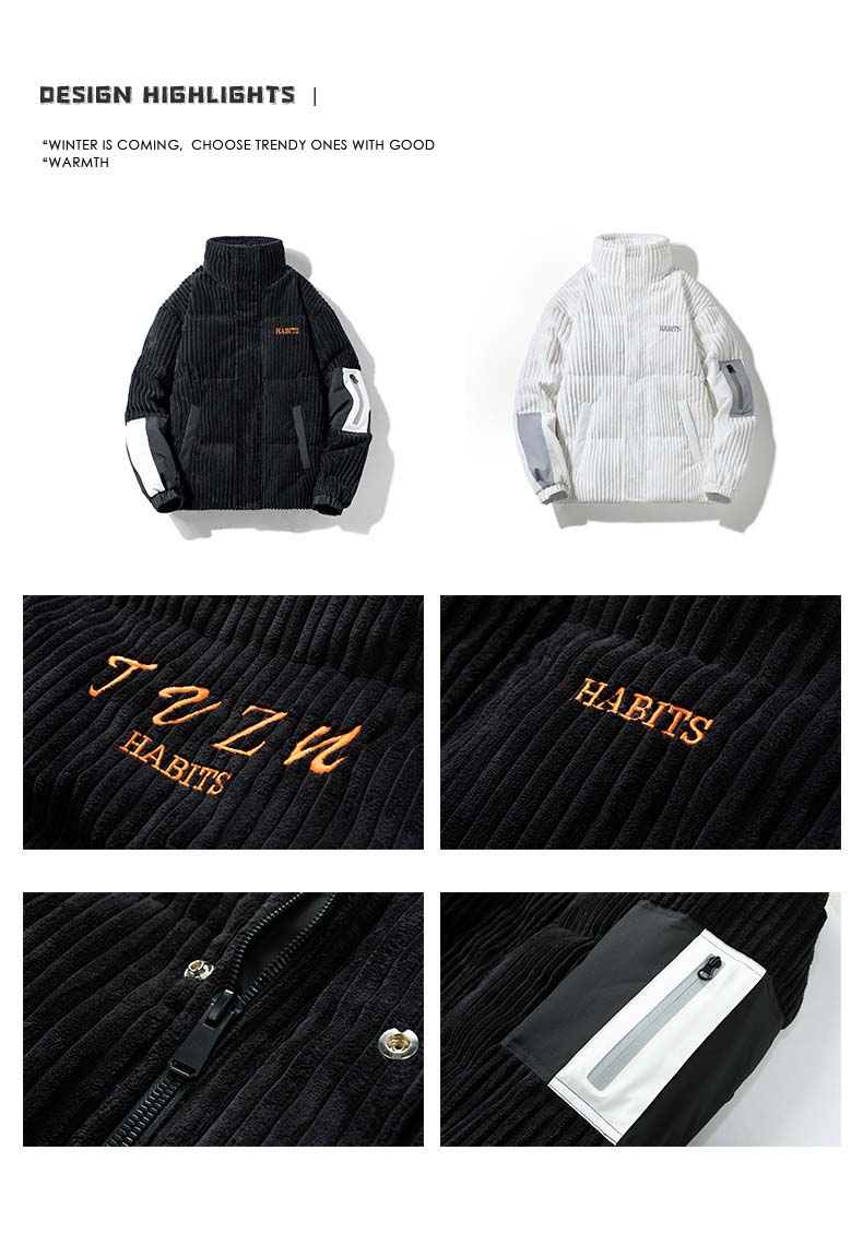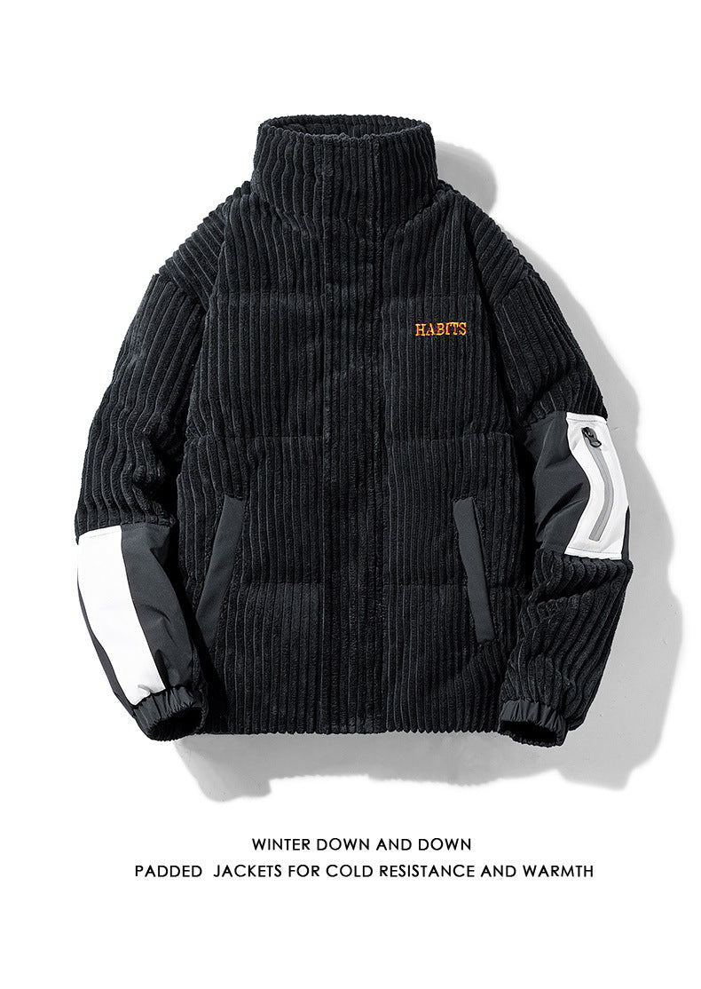 Men's All Weather Coats Corduroy Color-block Down Jacket