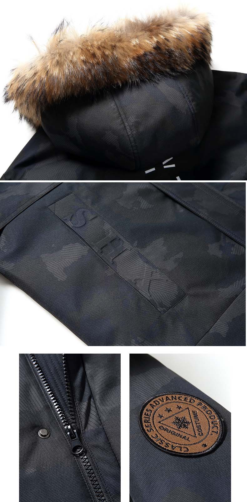 - Fur collar: 100% raccoon hair
