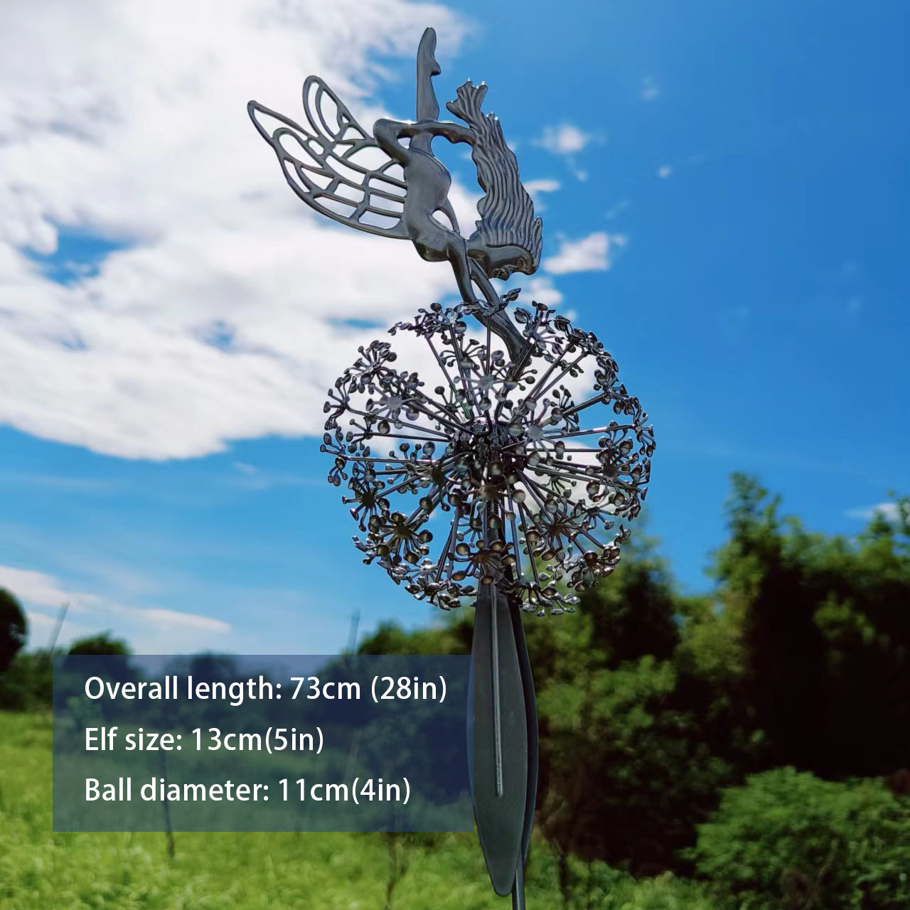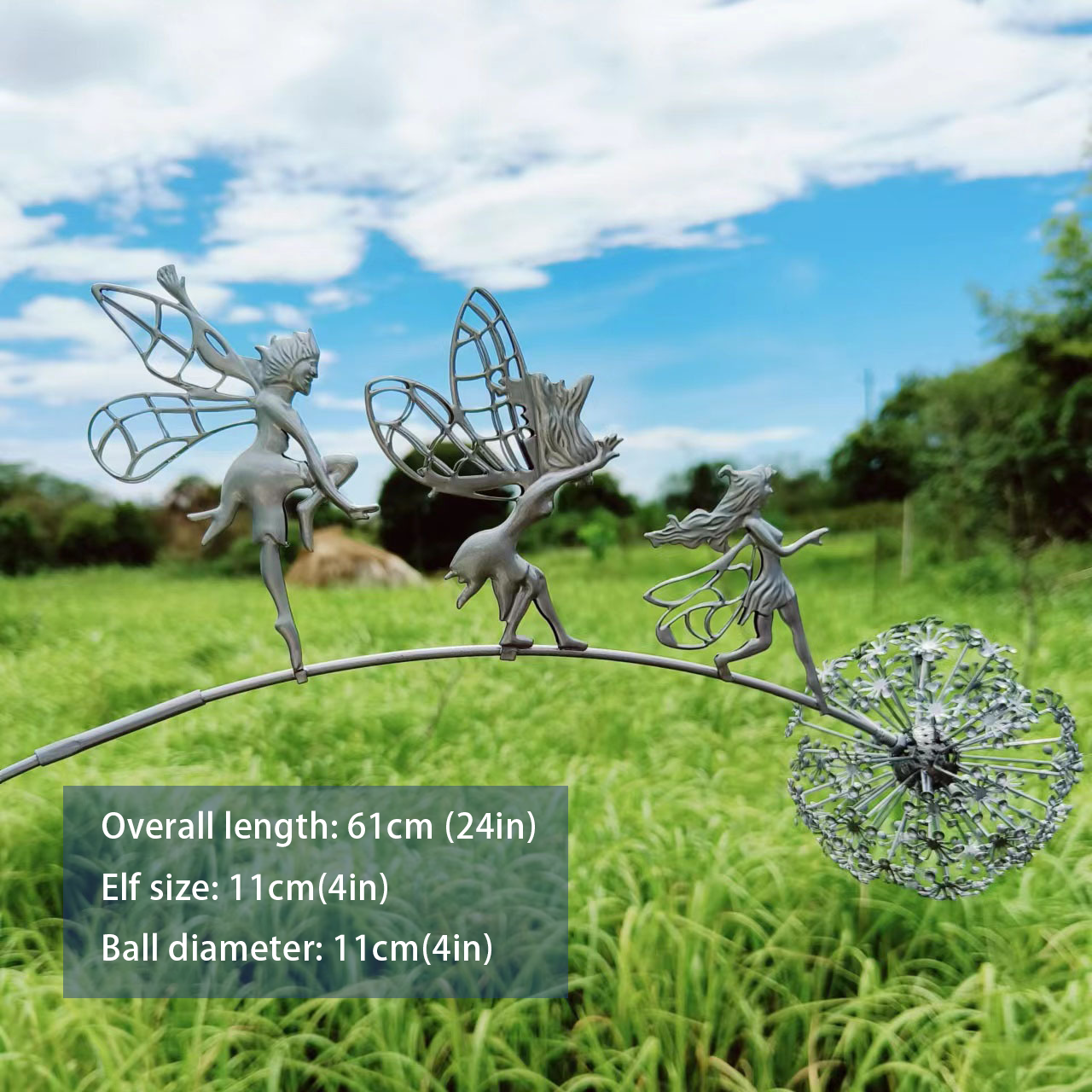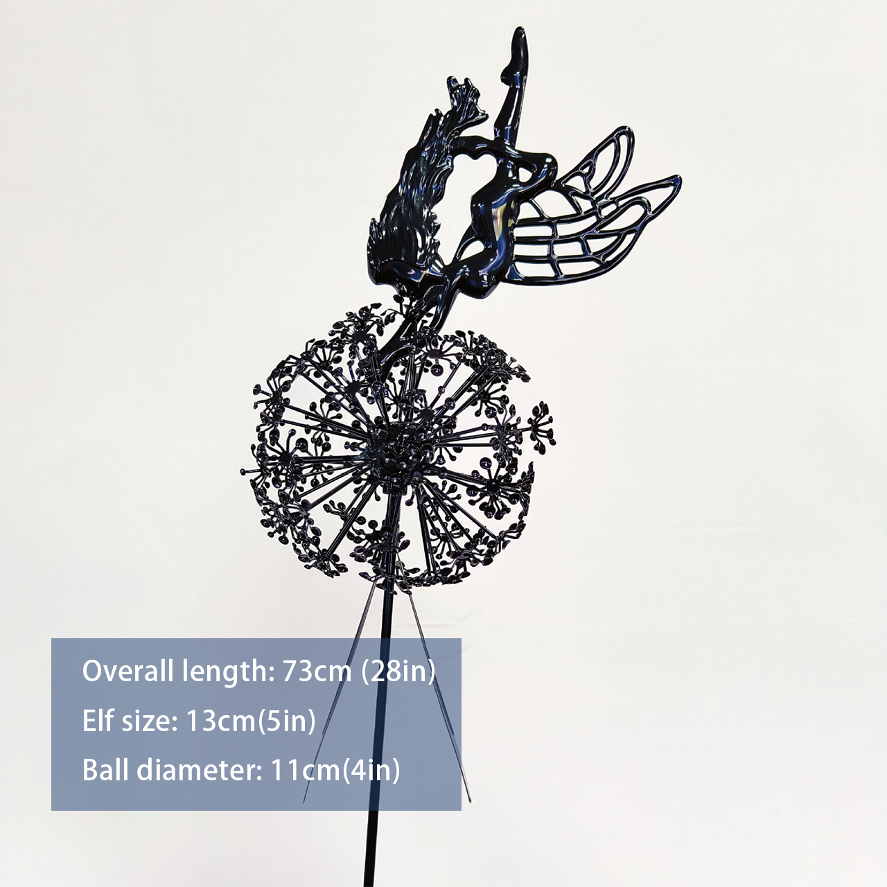 ❤ High Quality Material: The flower fairy dancing with dandelion sculpture is made of high-quality metal material,which is durable and weatherproof,can retain its new look for a long time.You can display them all year round to add fun to any garden.
