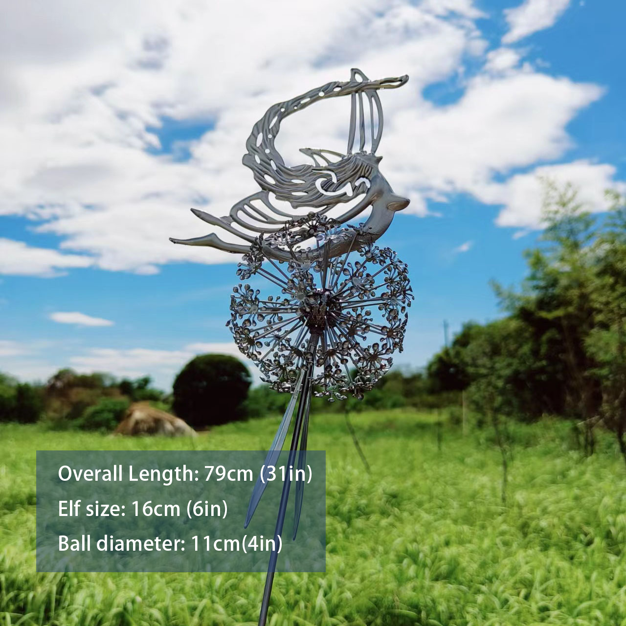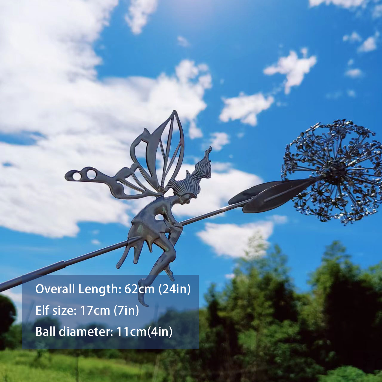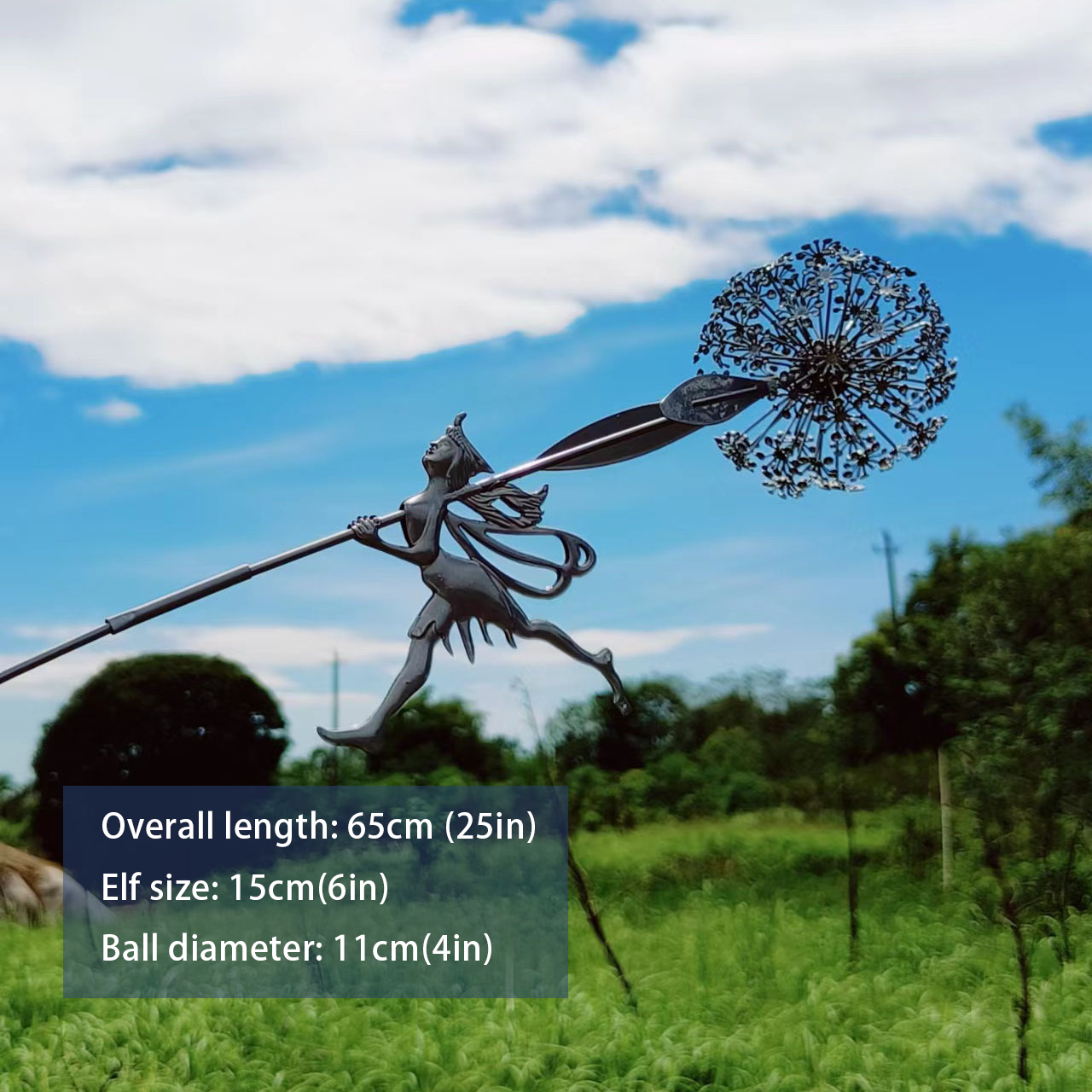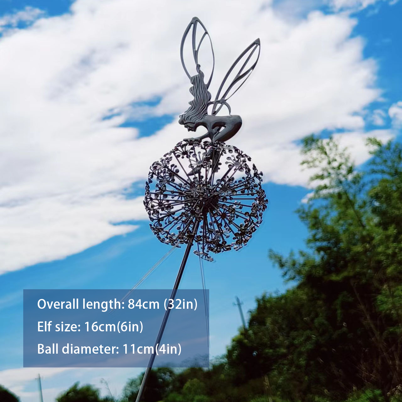 ❤ High Quality Material: The flower fairy dancing with dandelion sculpture is made of high-quality metal material,which is durable and weatherproof,can retain its new look for a long time.You can display them all year round to add fun to any garden.