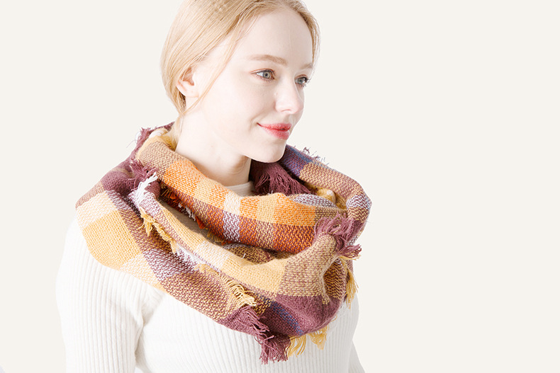 Woman Imitation Cashmere Double-sided Fringed Plaid Scarf