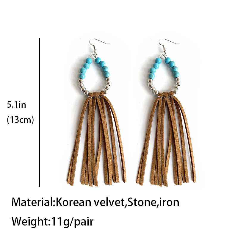 Woman Tassel Western Cowboy Style Turquoise Bead Earrings