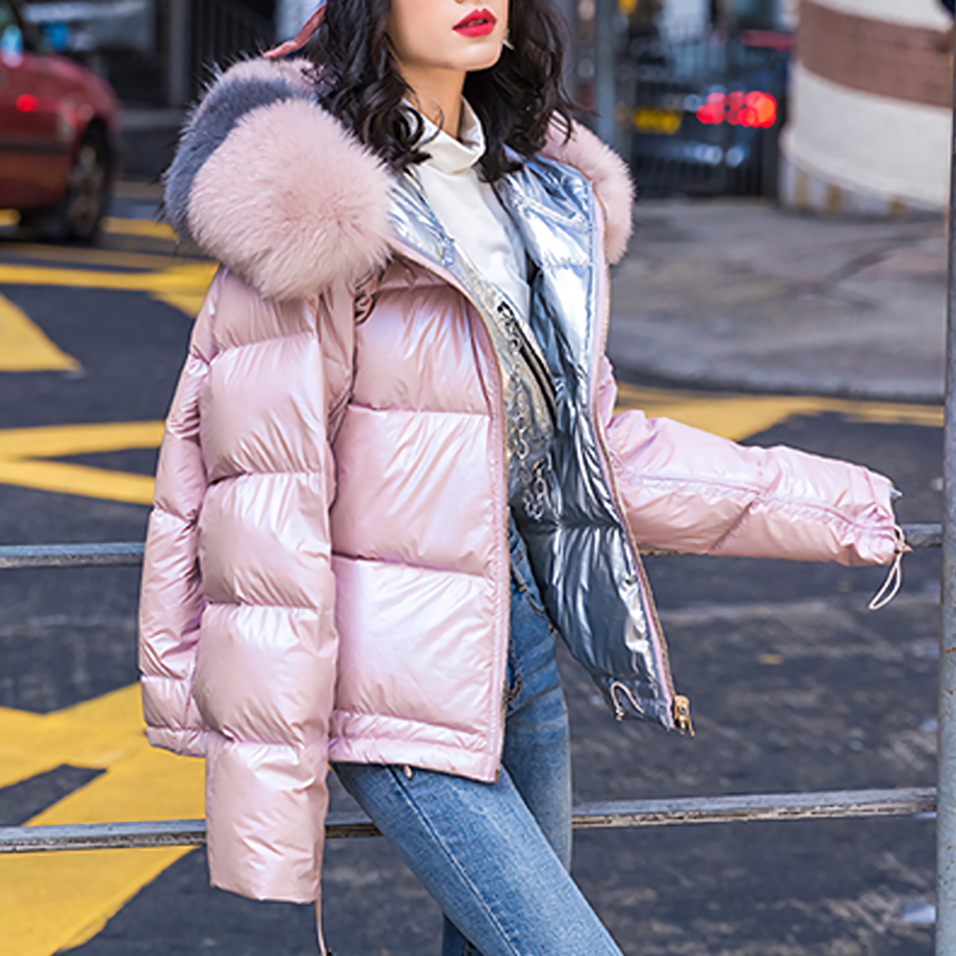 Free shipping Women Can Wear Large Fur Collar DownCoats On Both Sides-Summer Clearance