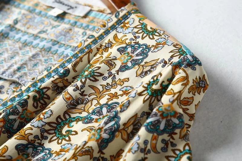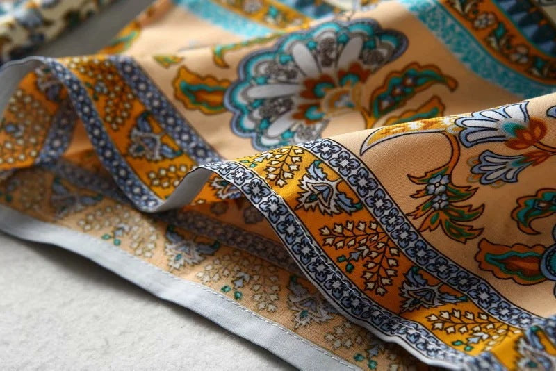 Women Vintage Jumpsuit Boho Print Beach Jumpsuit Set