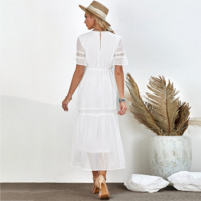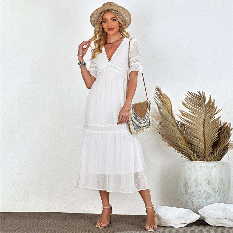 - Features: The front and back of White boho dress are made of beautiful deep V-cut design. The use of hollow decorative details which can show your charming figure, like a kind of beautiful scenery.