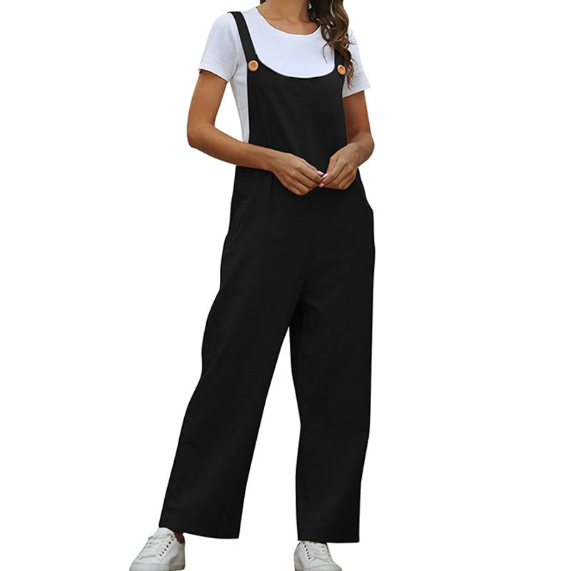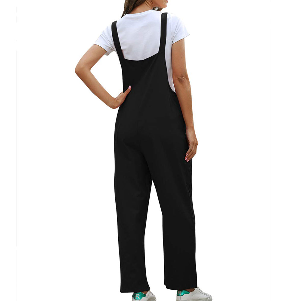 - Feature:Stylish boyfriend and retro style,Loose fit straight overalls, solid color full length jumpsuits,wide straps and botton closure,2 slant pockets.