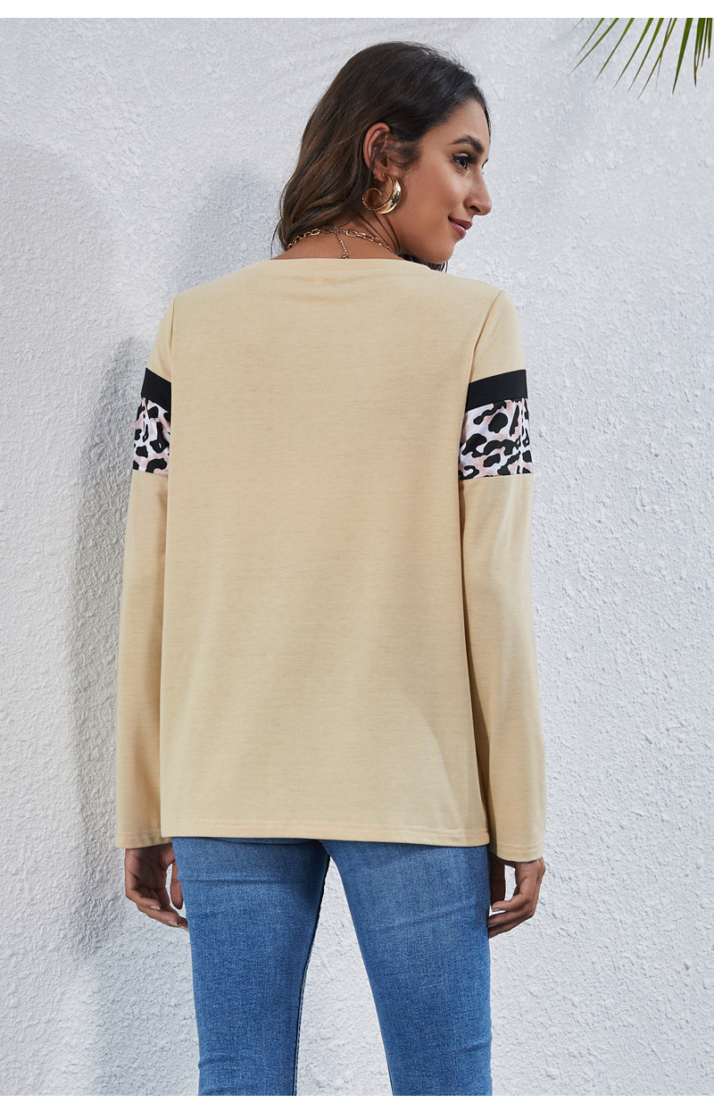 Women's Crew Neck Leopard Print Long Sleeve T-Shirt