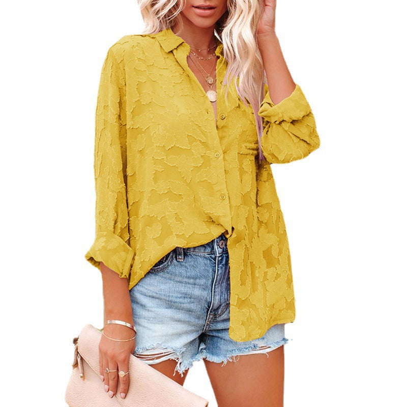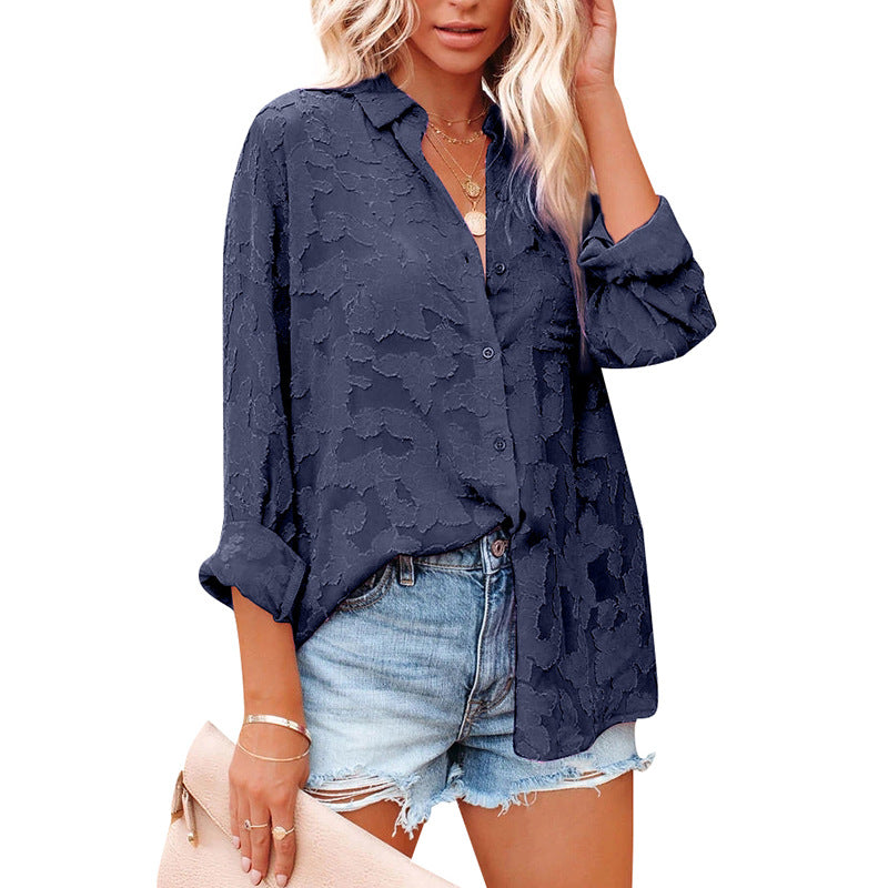 women's Hollow Chiffon Jacquard Long Sleeve Blouses