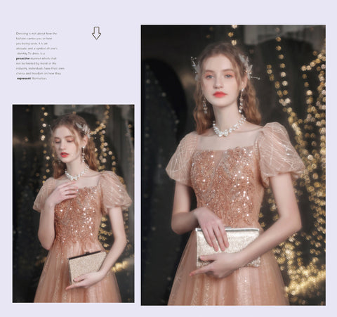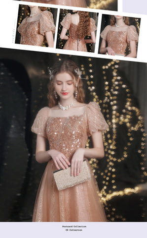 Women's Puff Sleeve Evening Dress Long Princess Dress