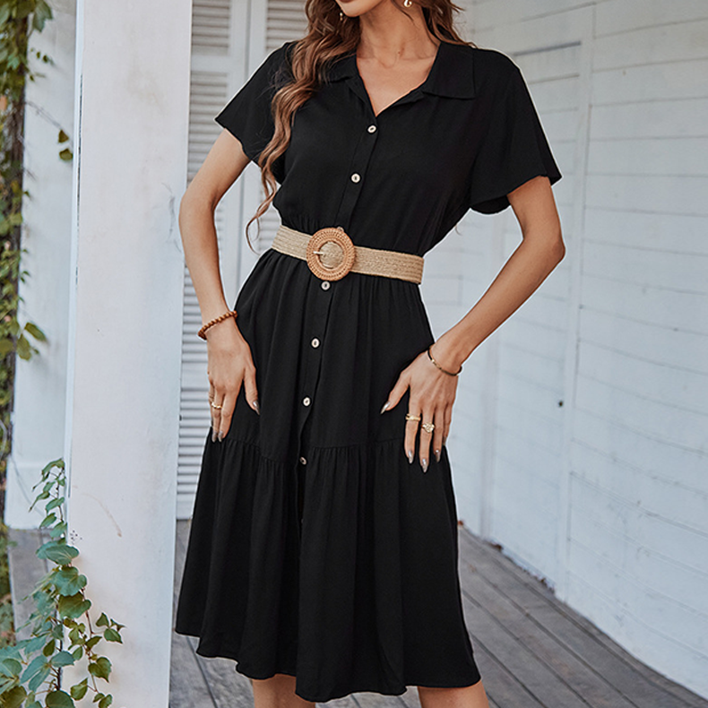 Women's Solid Color Shirt Button Short Sleeve Dress
