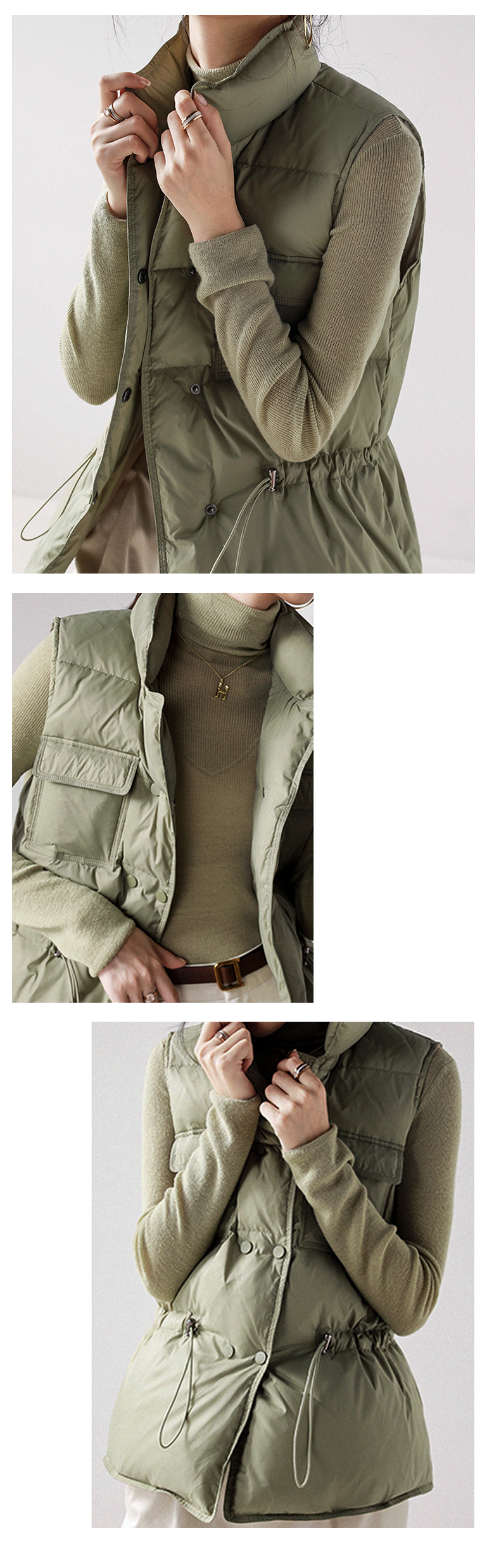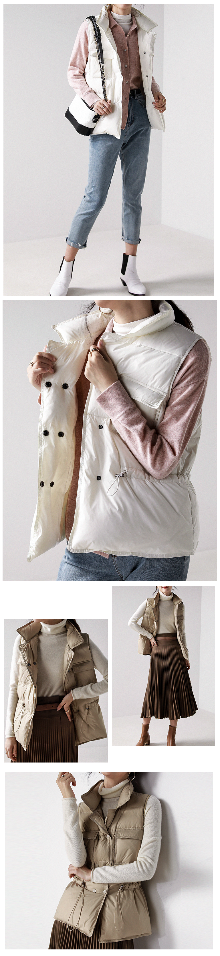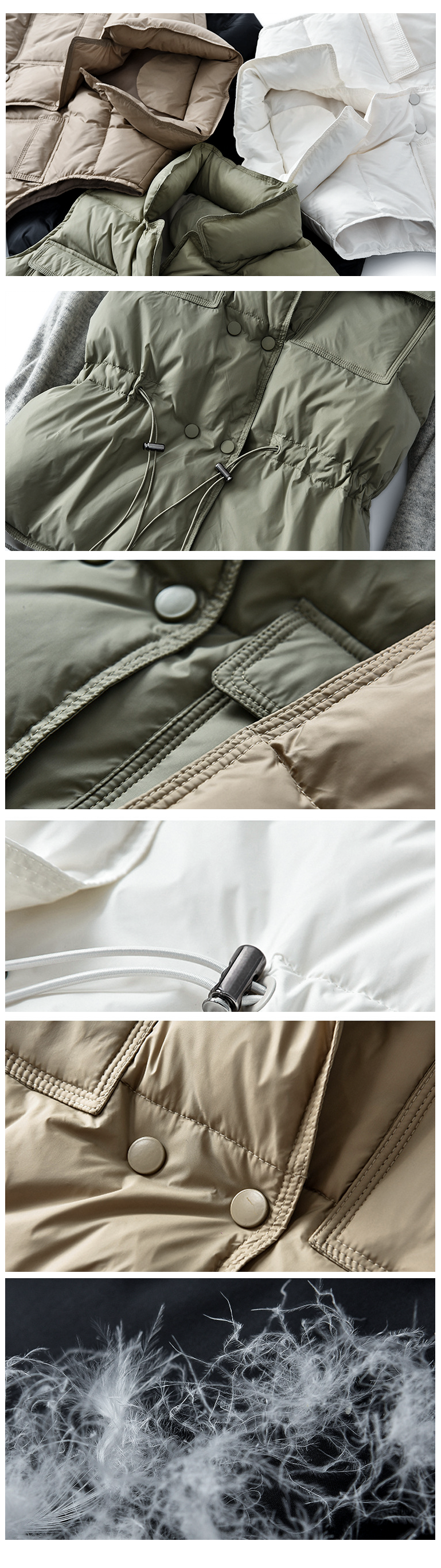 Women's White Duck Down Jacket Drawstring Waist Coat